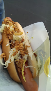 https://www.boardgamegeek.com/boardgame/169649/sapiensDominoes with cavemen-theme? Made in Lyon, but I haven't tested it yet... (A video: https://www.boardgamegeek.com/blogpost/46133/spiel-2015-preview-sapiens-or-dominoes-dawn-time )